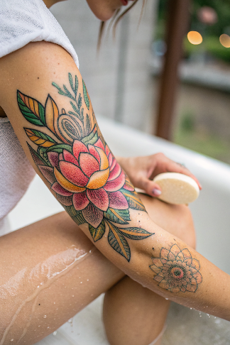 Dès la 1ère douche post-tattoo, une fois que ton tatoueur t’a donné le feu vert. En général, après avoir retiré le pansement cicatrisant.